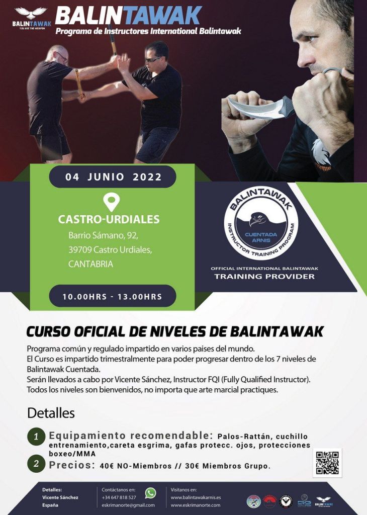 El próximo 04 de junio volvemos a la carga con nuestro segundo Curso de formación oficial de Balintawak y B3-Combat System, no te pierdas nuestro primer ciclo formativo del año.