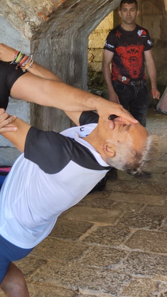En esta ocasión, comenzamos la mañana con entrenamiento de cuchillo contra cuchillo (en memoria de Francisco) de BOTHOAN TRAINING METHOD, a mitad de la mañana el instructor Sanyo nos mostró su visión sobre el KUBOTAN, muy combativa y practica por cierto, seguidamente mostre unos ejercicios de preparacion para el sparring, y para finalizar nuestra invitada especial, Antonela, nos deleito con su exigente entrenamiento de yoga.
