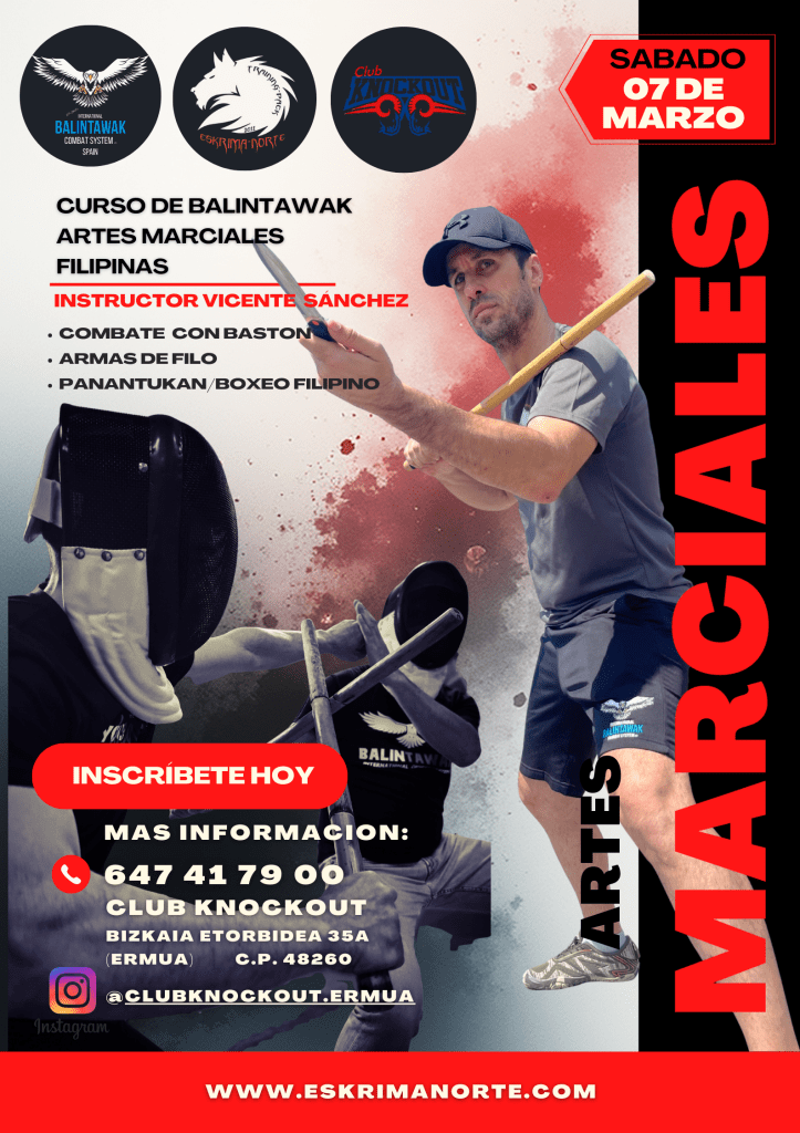 1er Curso del año de Balintawak en Ermua Publicado poreskrimanorte13 enero, 202613 enero, 2026Publicado en B3, Balintawak, Balintawak Combat System, ESKRIMA NORTEEtiquetas:Arnis, Balintawak, Balintawak B3, Eskrima, eskrima norte, kali, Richard Cotterill, vicente sanchez Comenzamos el año 2026 con un curso de Balintawak C.S. en el Gimansio Knockout en Ermua, en el que profundizaremos en el trabajo de la mecánica corporal y su trabajo con las armas de filo. Comparte esto: Haz clic para compartir en X (Se abre en una ventana nueva) X Haz clic para compartir en Facebook (Se abre en una ventana nueva) Facebook Haz clic para enviar un enlace por correo electrónico a un amigo (Se abre en una ventana nueva) Correo electrónico Haz clic para compartir en WhatsApp (Se abre en una ventana nueva) WhatsApp Me gusta Cargando... Relacionado