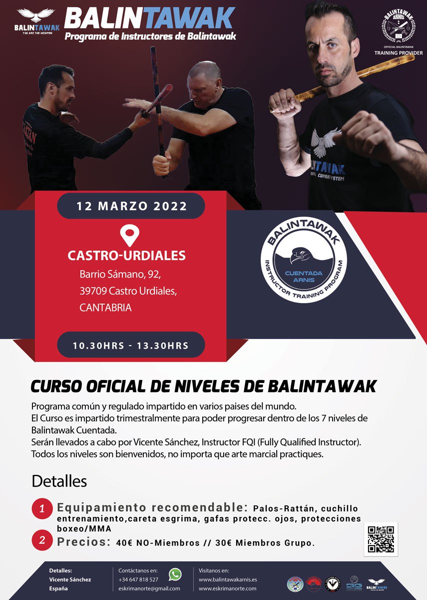 El próximo 12 de marzo volvemos a la carga, retomamos los Cursos de formación oficial de Balintawak y B3-Combat System, no te pierdas nuestro primer ciclo formativo del año. Reserva tu plaza, aforo limitado.